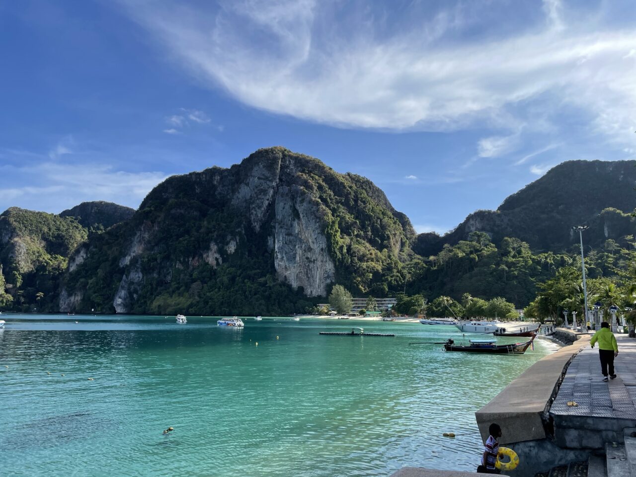 In Phi Phi town, you’ll be served a buffet lunch at a hotel. Then you may have time for a short stroll around Phi Phi Town before you’ll have the option to be taken by a smaller boat to a pontoon in Coral Bay for snorkeling. If you’d rather not snorkel you’ll have the option of a longer visit to Phi Phi town. After that, it’s time for the return trip to Phuket Town.